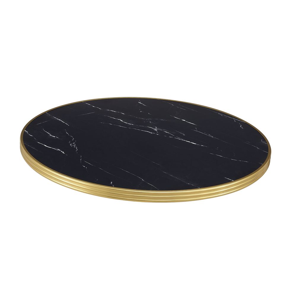 Nero Marquina Effect HPL Outdoor Tabletop with Brass Metal Trim